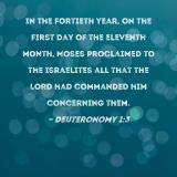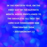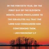 In the fortieth year, on the first day of the eleventh month, Moses proclaimed to the Israelites all that the LORD had commanded him concerning them.