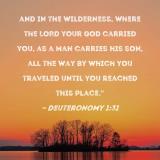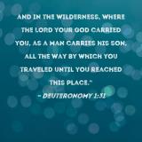 and in the wilderness, where the LORD your God carried you, as a man carries his son, all the way by which you traveled until you reached this place."