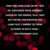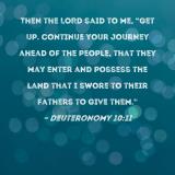 Then the LORD said to me, "Get up. Continue your journey ahead of the people, that they may enter and possess the land that I swore to their fathers to give them."