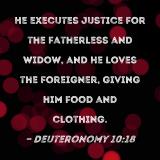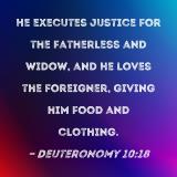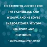 He executes justice for the fatherless and widow, and He loves the foreigner, giving him food and clothing.