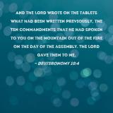 And the LORD wrote on the tablets what had been written previously, the Ten Commandments that He had spoken to you on the mountain out of the fire on the day of the assembly. The LORD gave them to me,