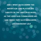 and I went back down the mountain and placed the tablets in the ark I had made, as the LORD had commanded me; and there they have remained.