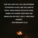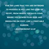 For the land that you are entering to possess is not like the land of Egypt, from which you have come, where you sowed your seed and irrigated on foot, like a vegetable garden.