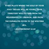 Every place where the sole of your foot treads will be yours. Your territory will extend from the wilderness to Lebanon, and from the Euphrates River to the Western Sea.