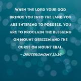 When the LORD your God brings you into the land you are entering to possess, you are to proclaim the blessing on Mount Gerizim and the curse on Mount Ebal.
