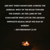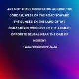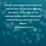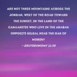 Are not these mountains across the Jordan, west of the road toward the sunset, in the land of the Canaanites who live in the Arabah opposite Gilgal near the Oak of Moreh?