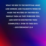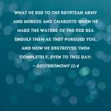 what He did to the Egyptian army and horses and chariots when He made the waters of the Red Sea engulf them as they pursued you, and how He destroyed them completely, even to this day;
