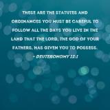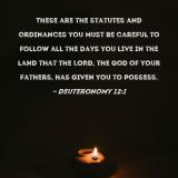 These are the statutes and ordinances you must be careful to follow all the days you live in the land that the LORD, the God of your fathers, has given you to possess.