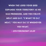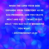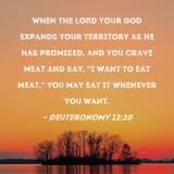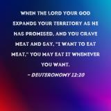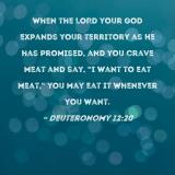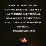 When the LORD your God expands your territory as He has promised, and you crave meat and say, "I want to eat meat," you may eat it whenever you want.