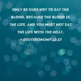 Only be sure not to eat the blood, because the blood is the life, and you must not eat the life with the meat.