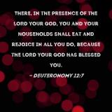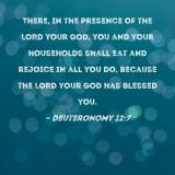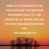 There, in the presence of the LORD your God, you and your households shall eat and rejoice in all you do, because the LORD your God has blessed you.