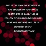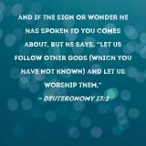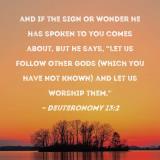 and if the sign or wonder he has spoken to you comes about, but he says, "Let us follow other gods (which you have not known) and let us worship them,"