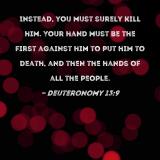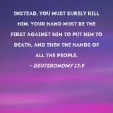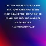 Instead, you must surely kill him. Your hand must be the first against him to put him to death, and then the hands of all the people.