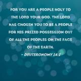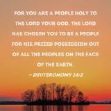 for you are a people holy to the LORD your God. The LORD has chosen you to be a people for His prized possession out of all the peoples on the face of the earth.