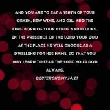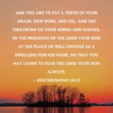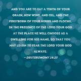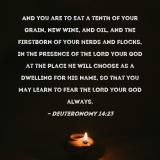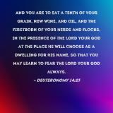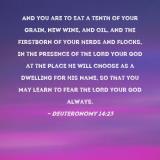 Pictures and Artwork And you are to eat a tenth of your grain, new wine, and oil, and the firstborn of your herds and flocks, in the presence of the LORD your God at the place He will choose as a dwelling for His Name, so that you may learn to fear the LORD your God always. |