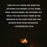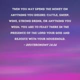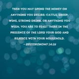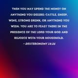 Then you may spend the money on anything you desire: cattle, sheep, wine, strong drink, or anything you wish. You are to feast there in the presence of the LORD your God and rejoice with your household.