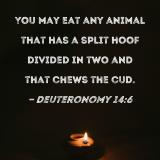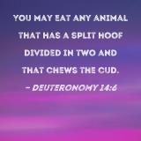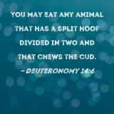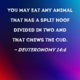 You may eat any animal that has a split hoof divided in two and that chews the cud.