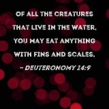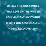 Of all the creatures that live in the water, you may eat anything with fins and scales,
