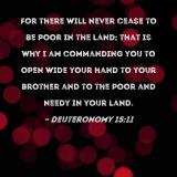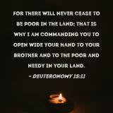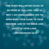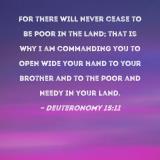 For there will never cease to be poor in the land; that is why I am commanding you to open wide your hand to your brother and to the poor and needy in your land.