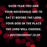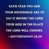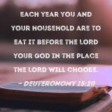 Each year you and your household are to eat it before the LORD your God in the place the LORD will choose.