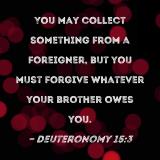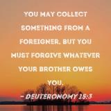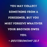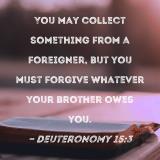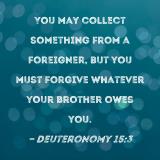You may collect something from a foreigner, but you must forgive whatever your brother owes you.