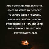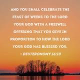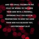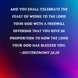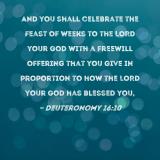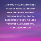 And you shall celebrate the Feast of Weeks to the LORD your God with a freewill offering that you give in proportion to how the LORD your God has blessed you,