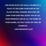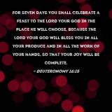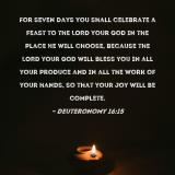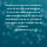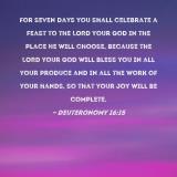 For seven days you shall celebrate a feast to the LORD your God in the place He will choose, because the LORD your God will bless you in all your produce and in all the work of your hands, so that your joy will be complete.