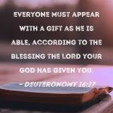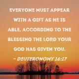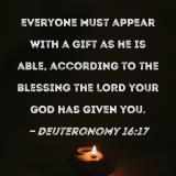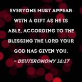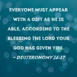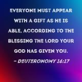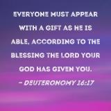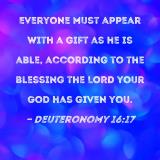 Everyone must appear with a gift as he is able, according to the blessing the LORD your God has given you.