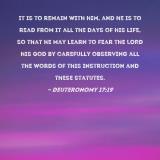 It is to remain with him, and he is to read from it all the days of his life, so that he may learn to fear the LORD his God by carefully observing all the words of this instruction and these statutes.