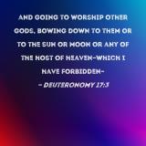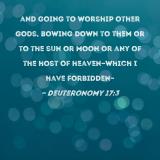 and going to worship other gods, bowing down to them or to the sun or moon or any of the host of heaven--which I have forbidden--