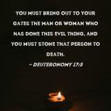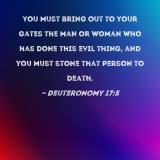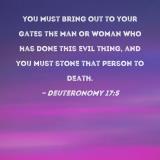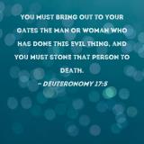 you must bring out to your gates the man or woman who has done this evil thing, and you must stone that person to death.