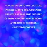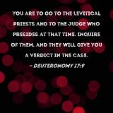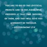 You are to go to the Levitical priests and to the judge who presides at that time. Inquire of them, and they will give you a verdict in the case.