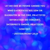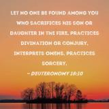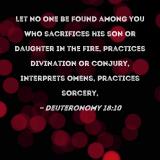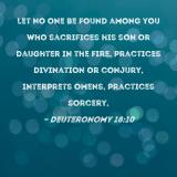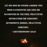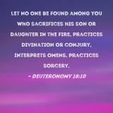 Let no one be found among you who sacrifices his son or daughter in the fire, practices divination or conjury, interprets omens, practices sorcery,