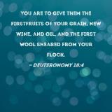 You are to give them the firstfruits of your grain, new wine, and oil, and the first wool sheared from your flock.