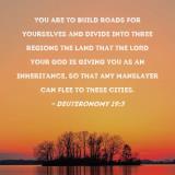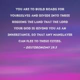 You are to build roads for yourselves and divide into three regions the land that the LORD your God is giving you as an inheritance, so that any manslayer can flee to these cities.