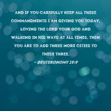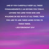 and if you carefully keep all these commandments I am giving you today, loving the LORD your God and walking in His ways at all times, then you are to add three more cities to these three.