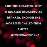 Like the Anakites, they were also regarded as Rephaim, though the Moabites called them Emites.