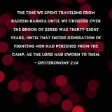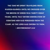 The time we spent traveling from Kadesh-barnea until we crossed over the Brook of Zered was thirty-eight years, until that entire generation of fighting men had perished from the camp, as the LORD had sworn to them.