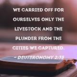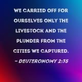 We carried off for ourselves only the livestock and the plunder from the cities we captured.