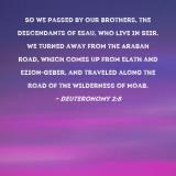 So we passed by our brothers, the descendants of Esau, who live in Seir. We turned away from the Arabah road, which comes up from Elath and Ezion-geber, and traveled along the road of the Wilderness of Moab.