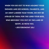 When you go out to war against your enemies and see horses, chariots, and an army larger than yours, do not be afraid of them; for the LORD your God, who brought you out of the land of Egypt, is with you.