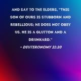 and say to the elders, "This son of ours is stubborn and rebellious; he does not obey us. He is a glutton and a drunkard."