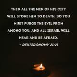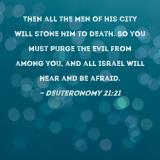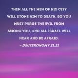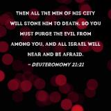 Then all the men of his city will stone him to death. So you must purge the evil from among you, and all Israel will hear and be afraid.