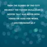 Then the elders of the city nearest the victim shall take a heifer that has never been yoked or used for work,