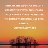 Then all the elders of the city nearest the victim shall wash their hands by the stream over the heifer whose neck has been broken,