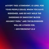Accept this atonement, O LORD, for Your people Israel whom You have redeemed, and do not hold the shedding of innocent blood against them." And the bloodshed will be atoned for.