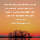 You may take the young, but be sure to let the mother go, so that it may be well with you and that you may prolong your days.