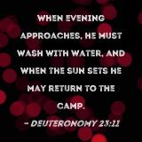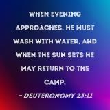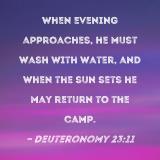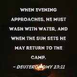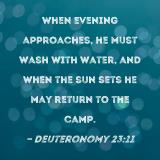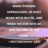 When evening approaches, he must wash with water, and when the sun sets he may return to the camp.