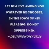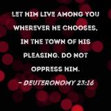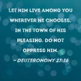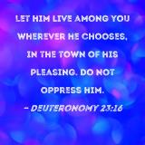 Let him live among you wherever he chooses, in the town of his pleasing. Do not oppress him.