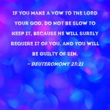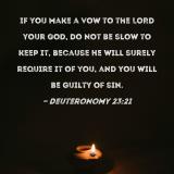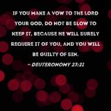 If you make a vow to the LORD your God, do not be slow to keep it, because He will surely require it of you, and you will be guilty of sin.